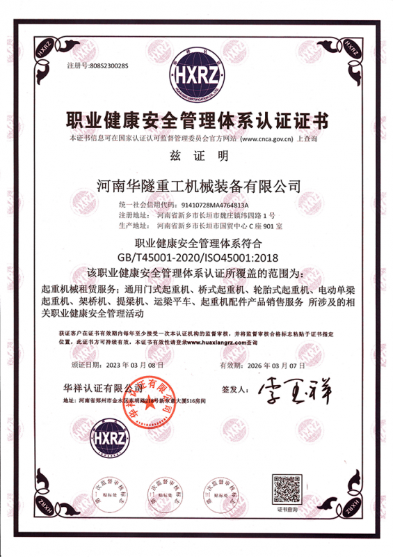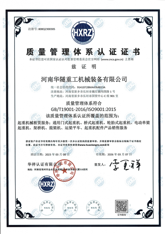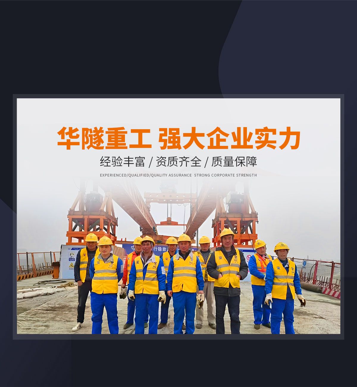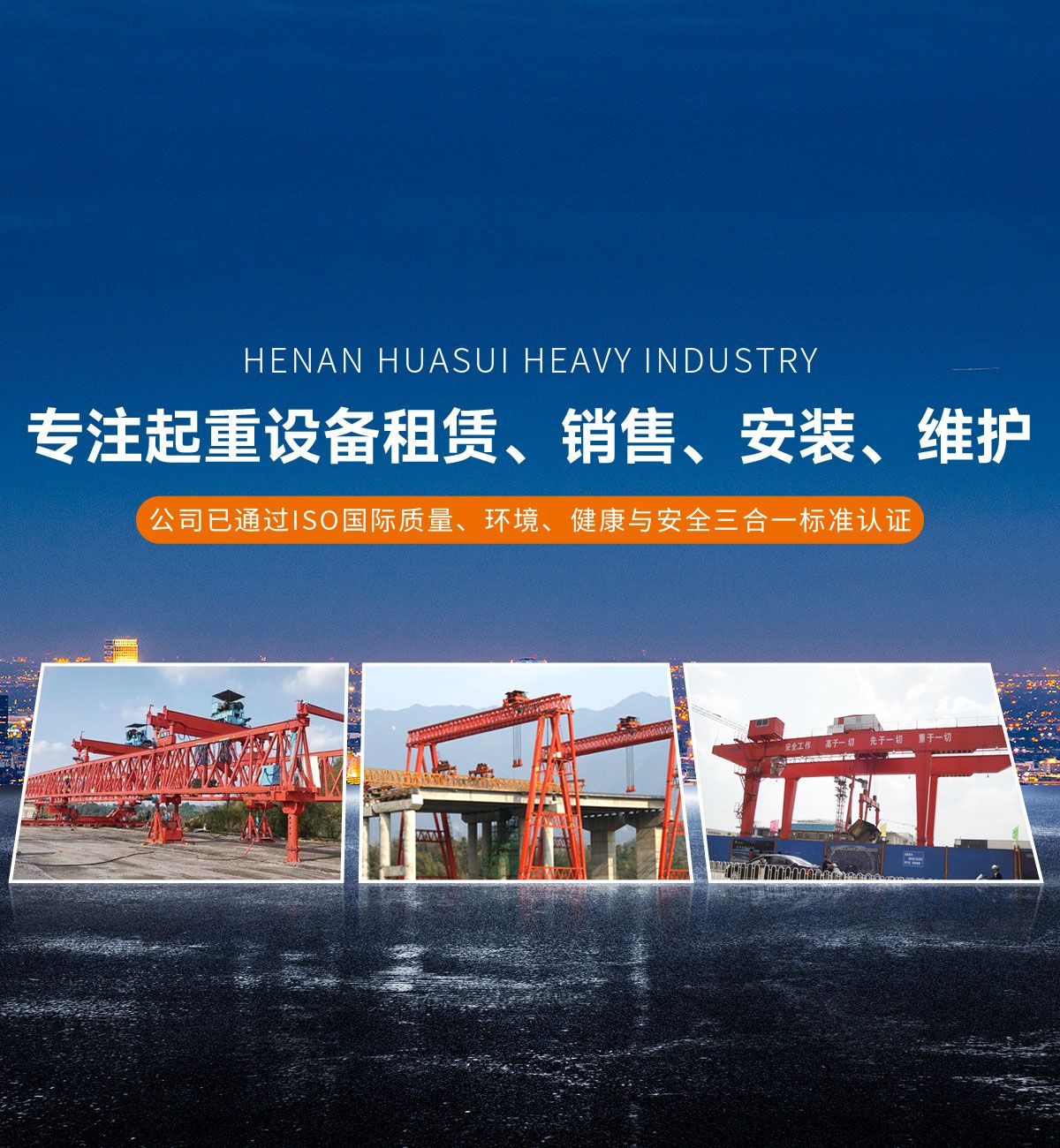 河南華隧重工機械裝備有限公司主要從事通用門式起重機、橋式起重機、電動單梁起重機,輪胎式起重機、架橋機、提梁機、遠梁平車、鋼絲繩電動萌蘆、卷揚機、起重配件制造、銷售:起重機械租賃、安裝和維修,起重設備園收,機械設備維修,鋼結構工程承包,橋梁工程及技術咨淘服務,銷售五金制品、機電設備:建設工程監理,建設工程設計,各類工程建設活動,建筑勞務分包,建筑物折除作業,施工作業,工程管理服務,土石方工程施工,裝如發運。  公司已通過IS0國際質量、環境、健康與安全三合一標準認證,特種設備制造許可證和特種設備安裝改造維修許可證。擁有完熟的質量管理體系。嚴格的管理制度,強大的生產能力和先進的檢測手段,在保證產品質量的同時,也具備了極強的市場競爭力?! 」緢猿挚萍紕撔聻槔砟?,產品質量為核心,注重信譽,建立了減信可靠、快捷、思速。便利周到的售后服務網絡?! ∥覀儞碛械募夹g專家和技術服務隊伍為客戶提供充善的售前技術支持和全天候的售后服務體系,讓您無后顧之憂,享受一站式的超值服務。  “華隧重工,伴您成功“是華隧重工永遠的宗指,真被的希望與各界朋友攜手并進。共創輝準!